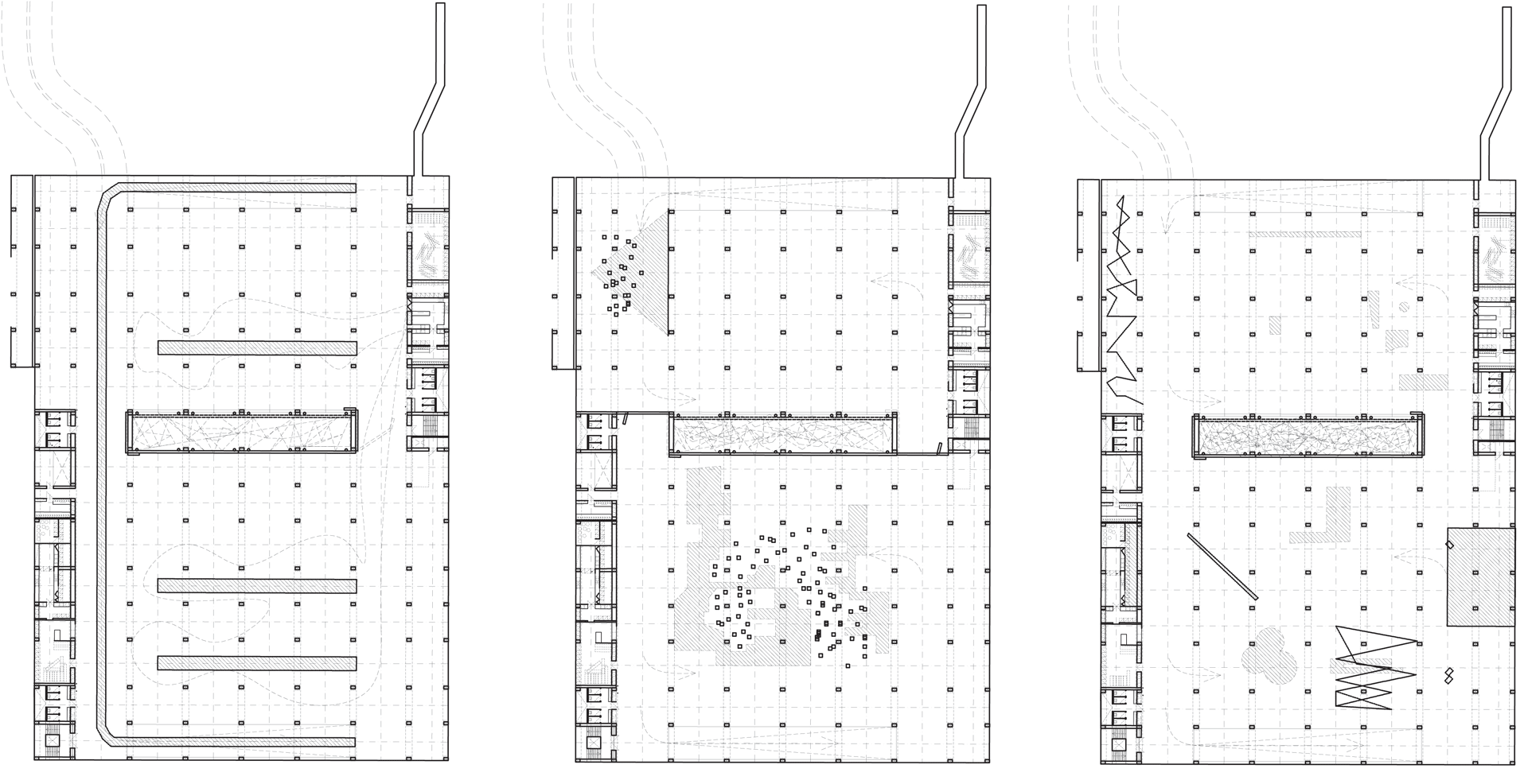 Where does space lie for a new urban plan of discontinuous areas, that have already been examined by nine unrealized plans? Furthermore, can a new plan include change as the main design parameter? The Tenth Plan responds by reduction and changeability. It drafts a scenario extending into the far future, beyond the termination of the territory's denominator: film studios. Based on a map of local and wider centers and placed on historic routes, it specifies three major acceleration points in the ideologically uncharted area along the most important traffic barrier. Points are deliberately designed to avoid the architecture's time specificity by hosting film landscapes. Their function and volume are a compromise between the interconnected city structures: physical or metaphysical. |