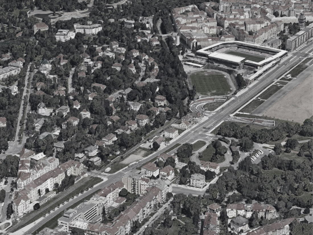 Exclusive lot near the Prague Castle, on the border of three urban types typical for the city: 19th-century city blocks, villa quarter, and a plain Park Letna, all confronted with a noisy street of massive traffic of cars from the South and of trains from the North. |