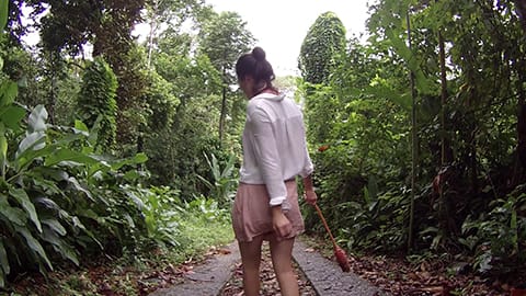 Seven interventions intentionally rejecting surprising wilderness of supposedly touristic spot. 1/ Eternal Sunshine of my Holiday, 2/ Sweeping away the Big Scary Spiders, 3/ Scissoring off the Withered Leaves, 4/ Hiding the Crab/ Spider/ Snakes or Whatever Holes, 5/ Warnishing Some Blossom, 6/ Perfecting the Beach, 7/ The Leaf Cap. |