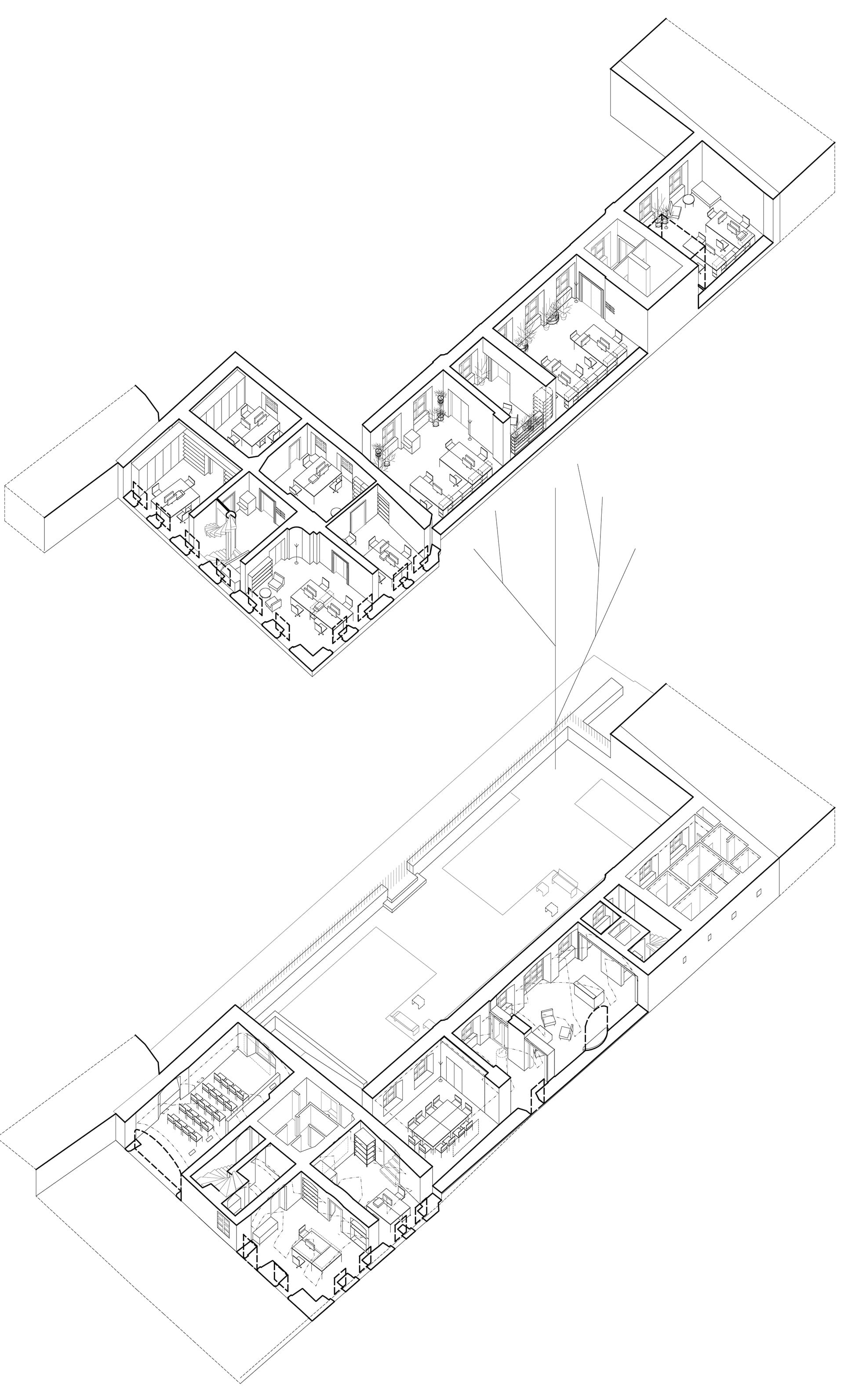 Wittman house, Kaunic Palace garden house, was originally designed as a place of summer feasts. These were later replaced by the functions of protection and companionship of modern women: the house was over sixty years used as the seat of the Czechoslovak Women's Union. Today the house serves as a representative and administrative center of Arts and Theatre Institute. To its street level, a variable usage and furnishing layout were presented, for its more private and less flexible first-floor office furniture with detail-oriented in-built furniture was designed. |