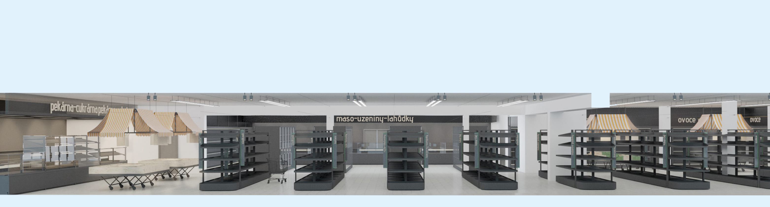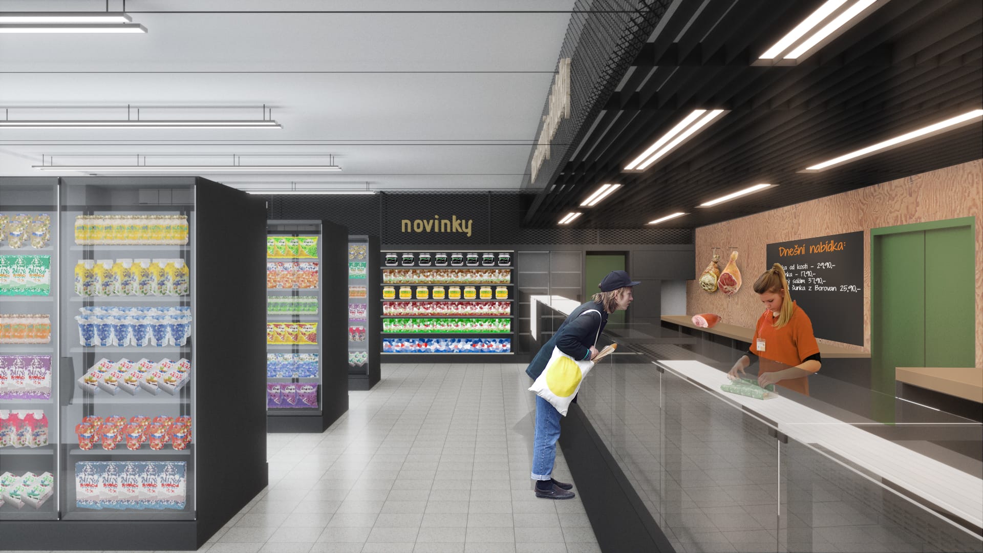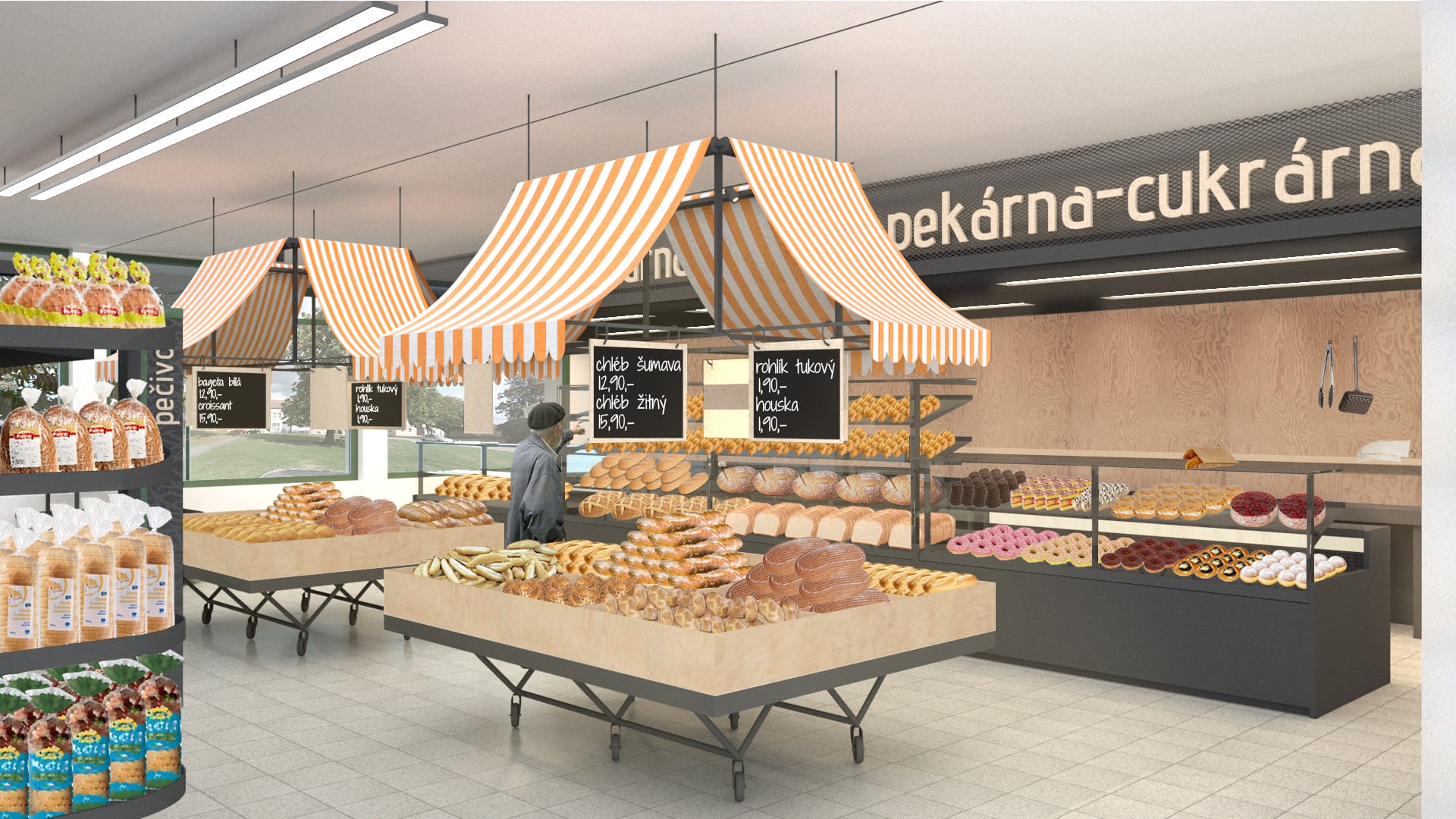 | The concept for co-operative shops Trefa and Terno Borovany, CZ, 2020 commissioned competition |