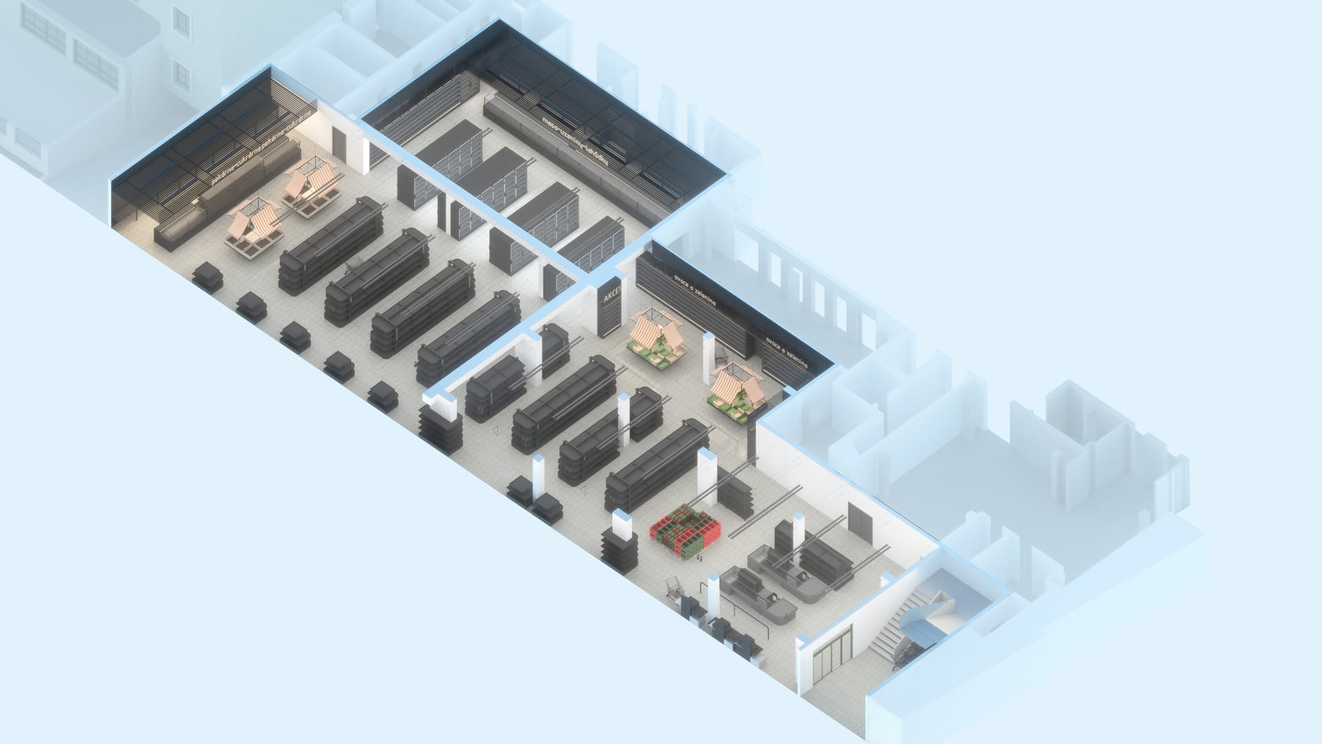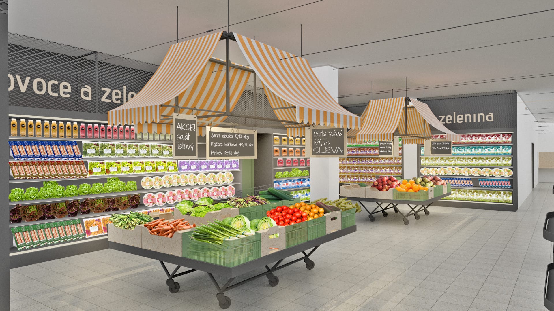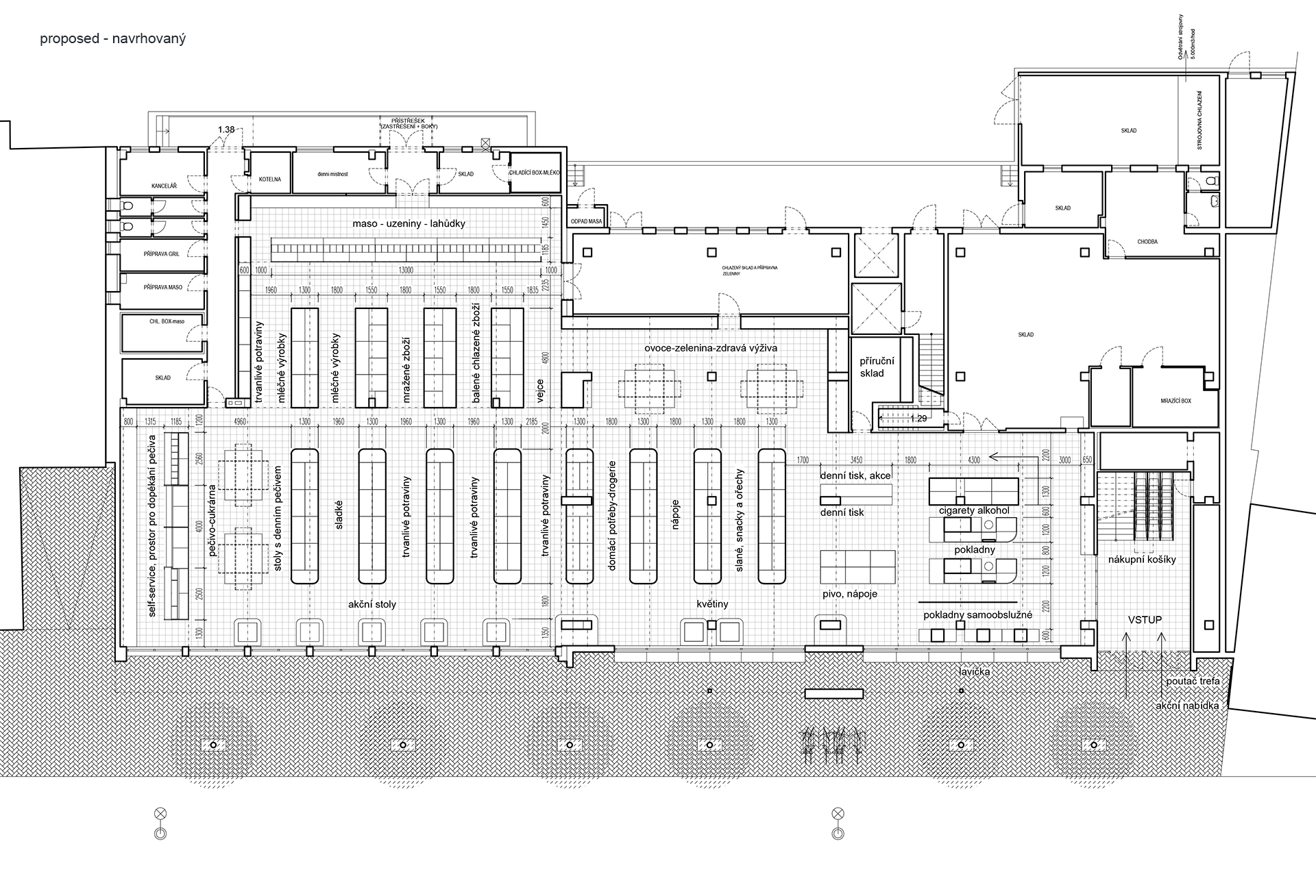 | The concept for co-operative shops Trefa and Terno Borovany, CZ, 2020 commissioned competition |