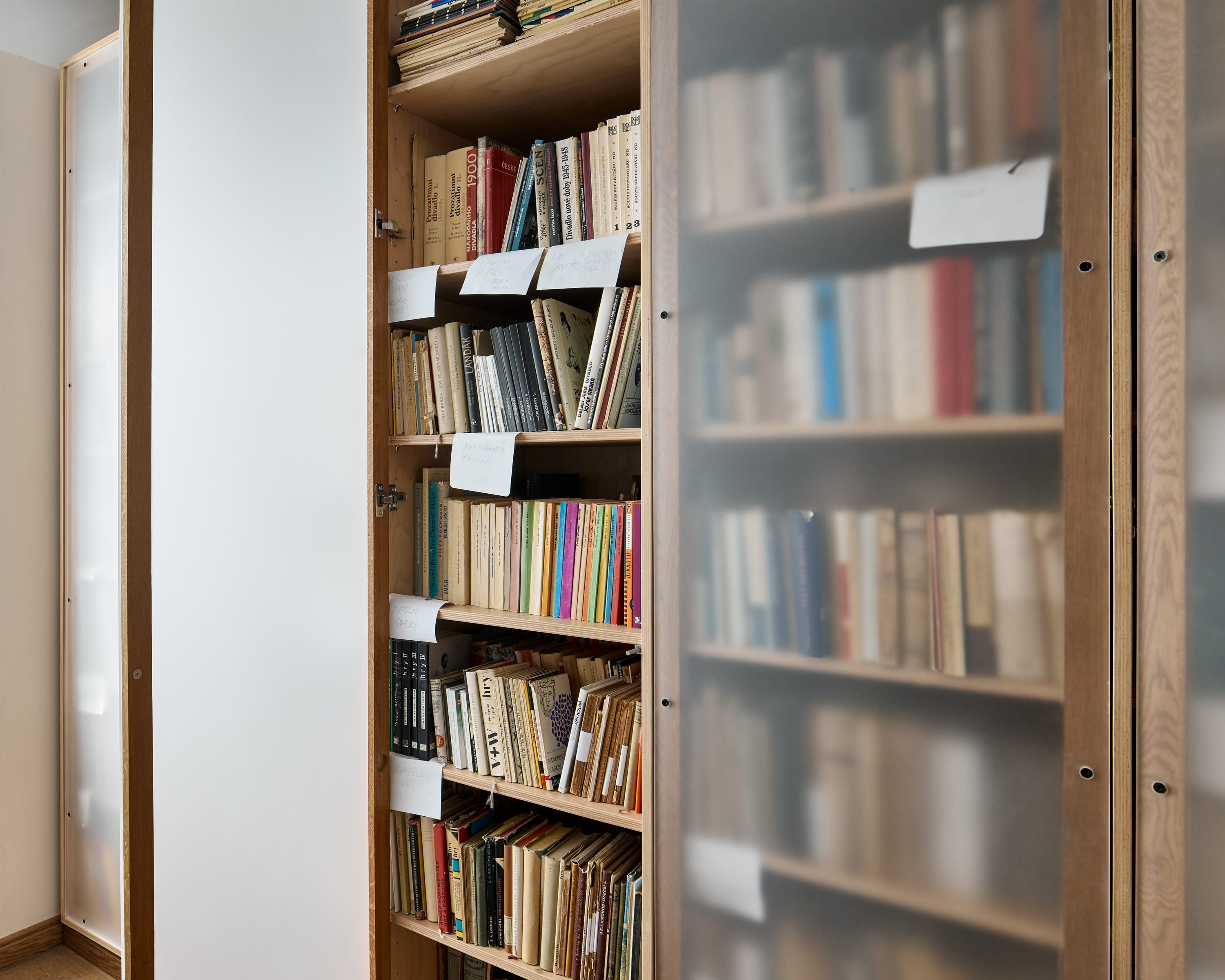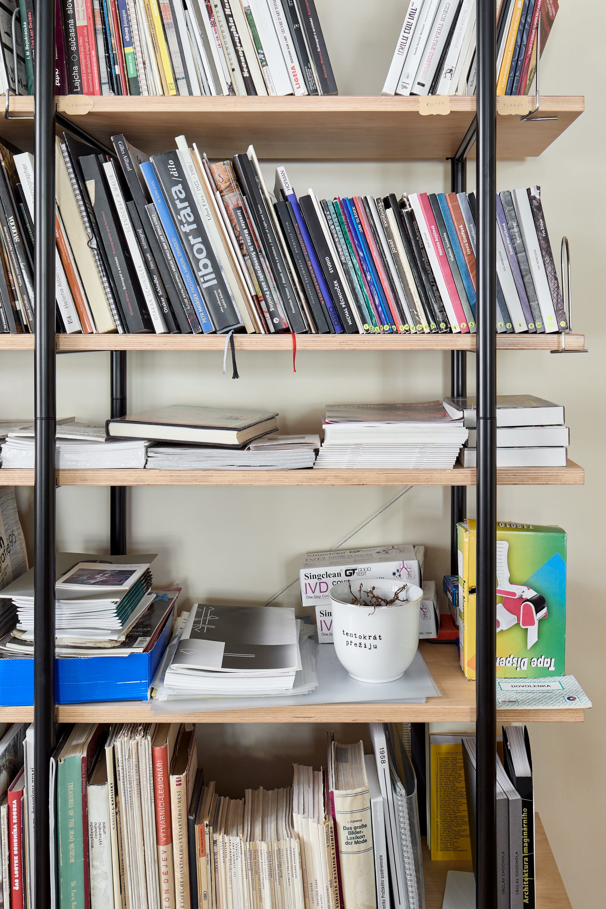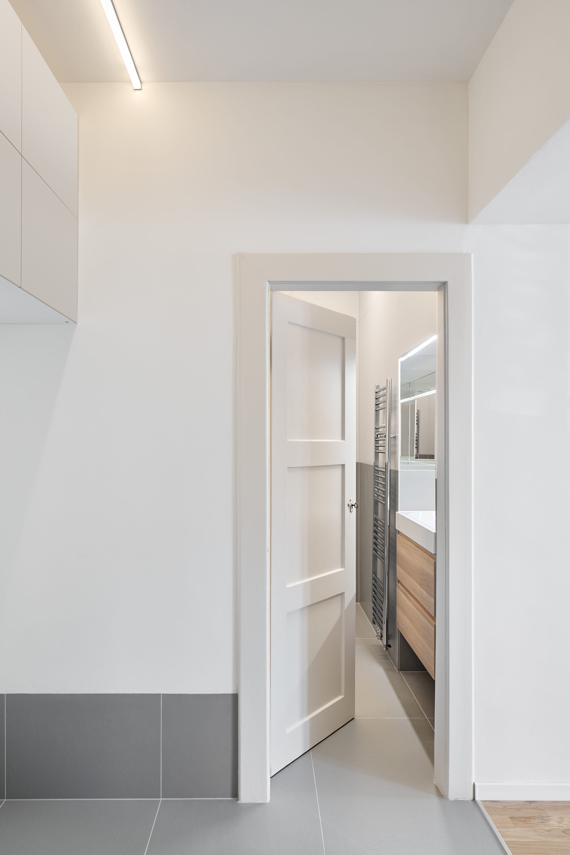 Finished partially for temporary rental purposes. 30's apartment building in Braník in Prague. Two-room remodel for maximal storage space, enough daylight in all rooms, and two working places in a 45m2 flat. Photos by Jan Kolsky.com. |