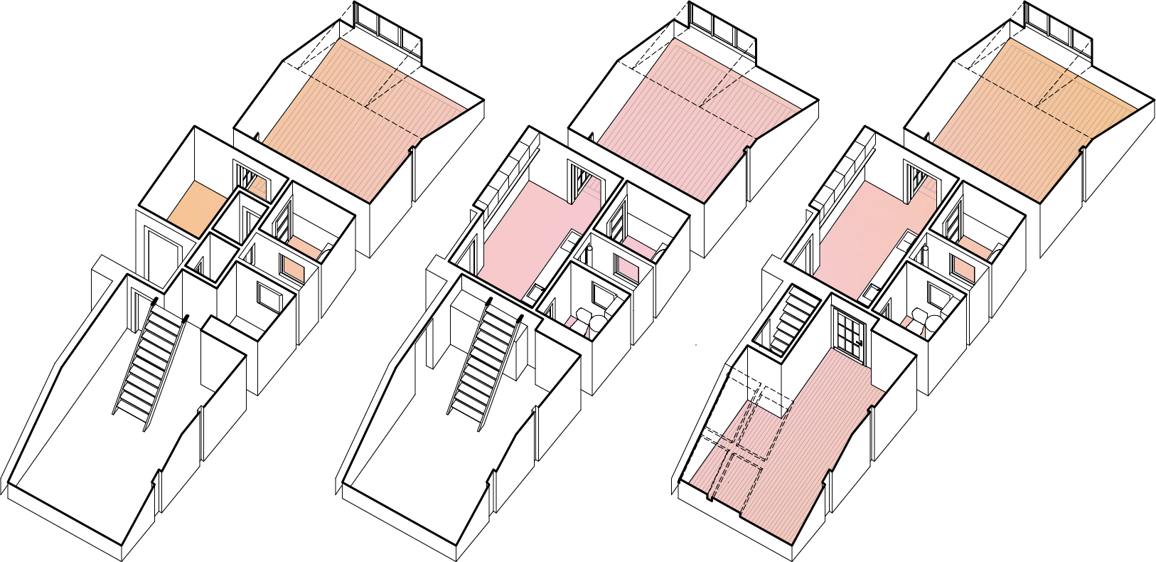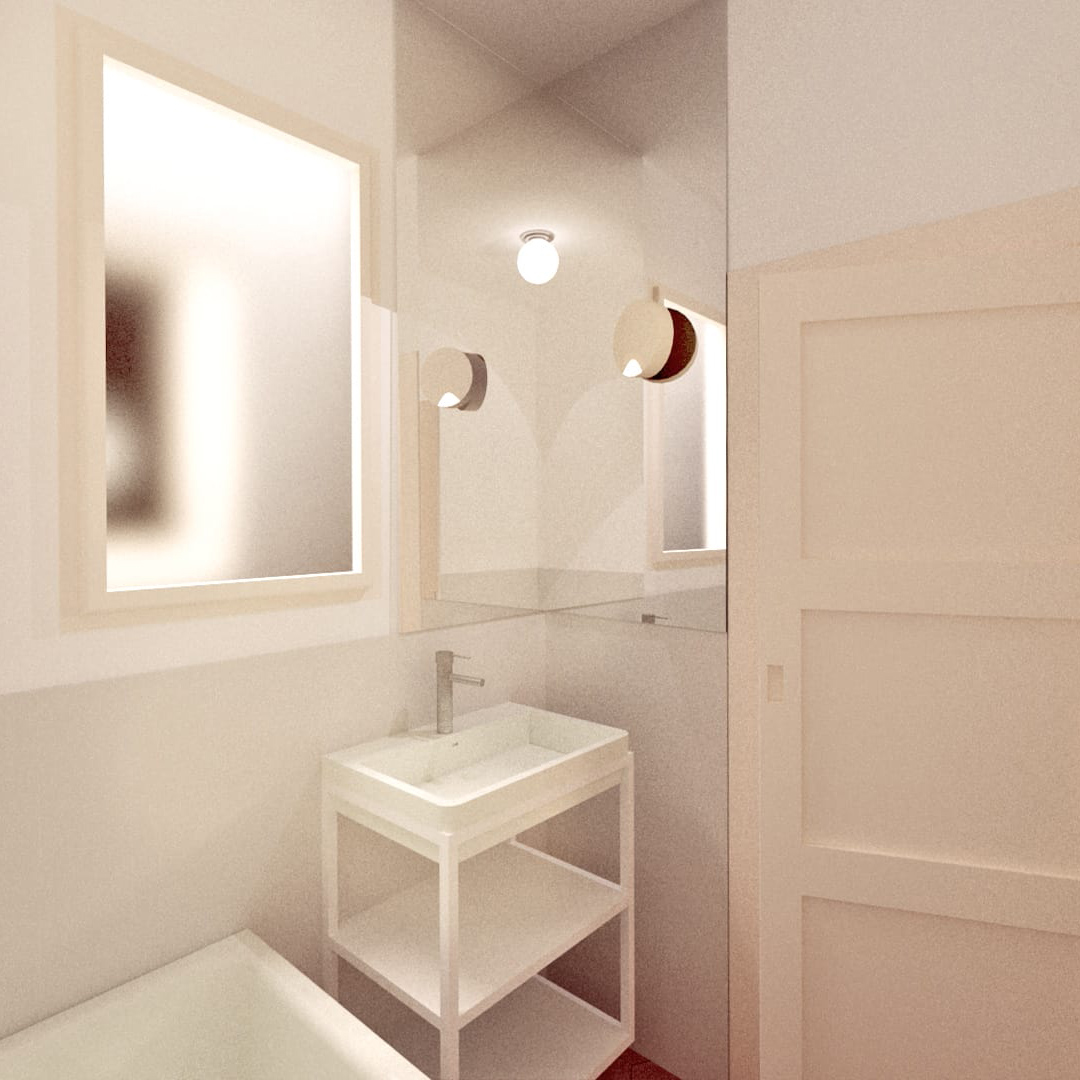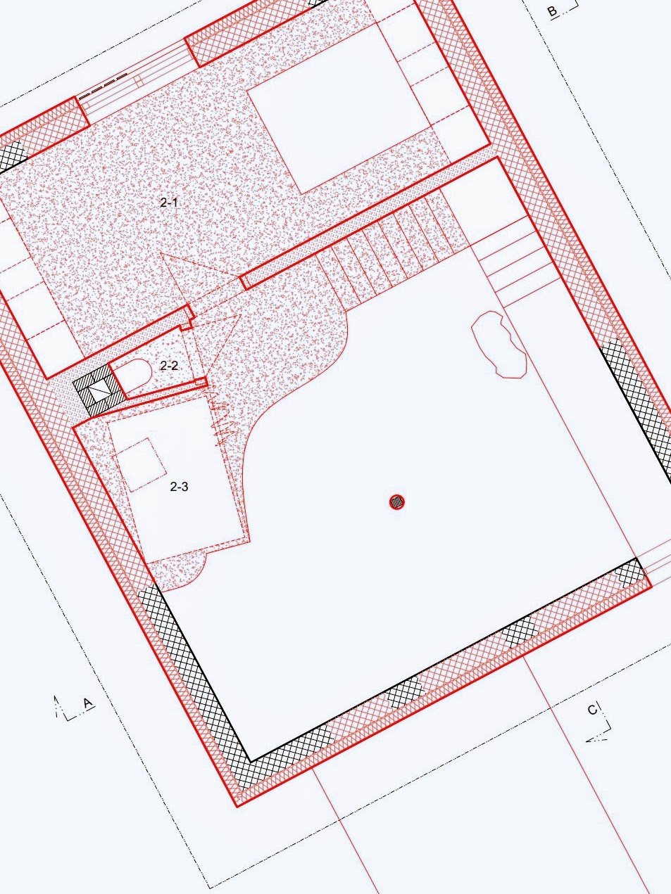 Leadman from previous construction called me and asked if I could have a look at a "flat that was worth an architect". With the owner, originally not looking for help, we agreed on creating a minimum - spacial concept for the interior and exterior flat (understand terrace) - leaving out deliberately materials and colors on her decision. |