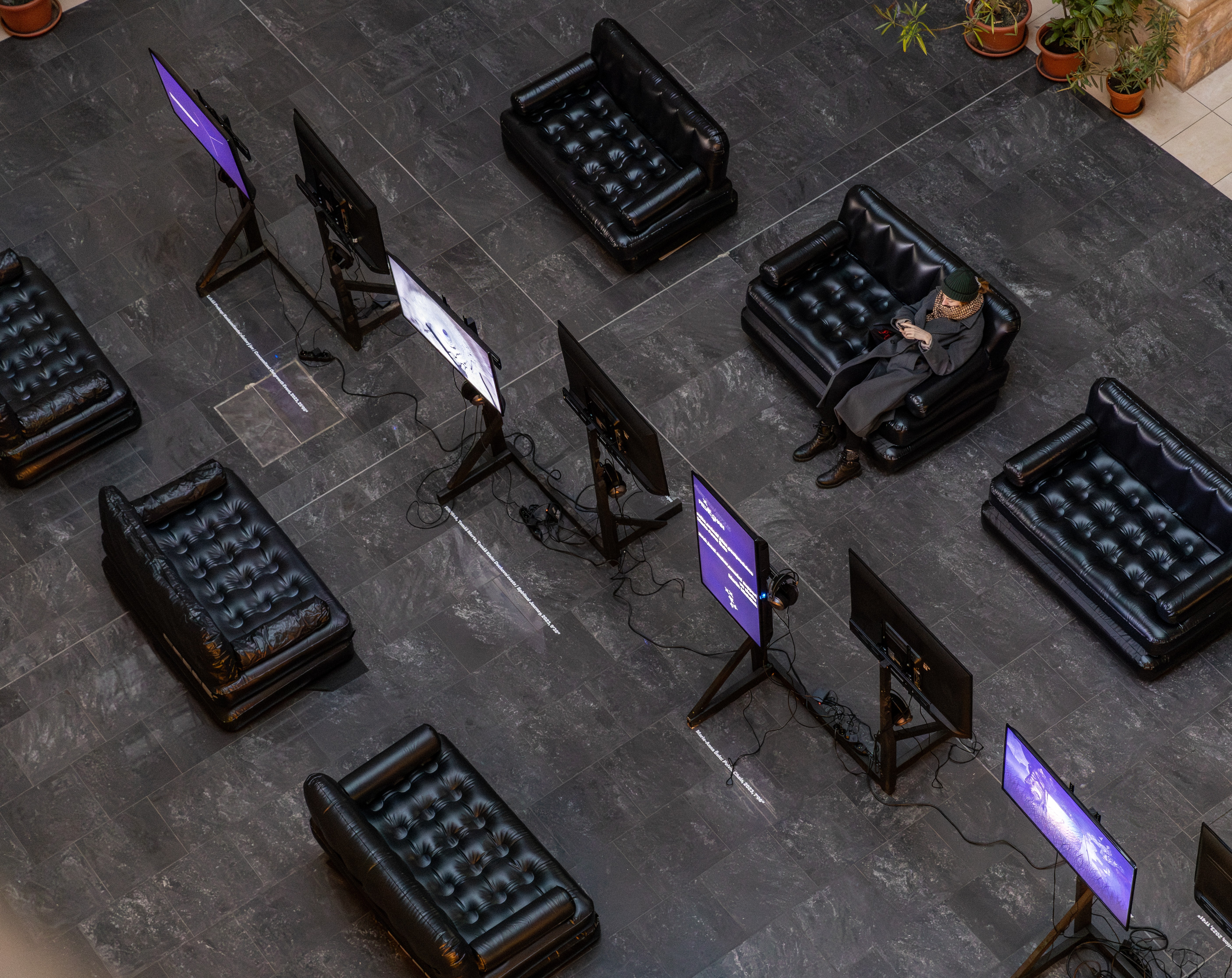 Watching, observing, snooping & sharing. In a bouncy installation for JinéVize/OtherVisions CZ 23. Subversive installation for competition finalists. Curated by Vojtech Marc Photo by Monika Abrhámová Dražilová a Tomáš Jakubec. |
