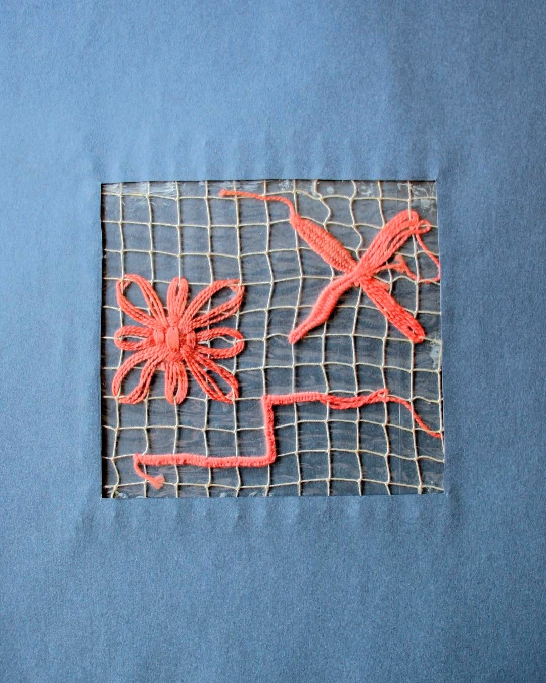 Warp, a structure to pierce, installation for eshibition ~By Stitch, By Stroke~ about Girl school Vesna in Horice ; Curator: Anna Crhová, Graphic design: Magdaléna Gurská. |